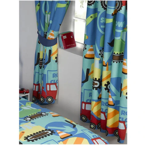 Ces rideaux de construction seront parfait pour les passionés de la construction! La conception amusante comprend une collection de camions et de pelleteuses colorés sur un fond bleu sur le thème des travaux publics. Les rideaux sont entièrement doublés et livrés avec des attaches. Ils conviennent également au lavage en machine. Le design correspond à nos housses de couette junior, simple et double exclusives Construction Time, que vous pouvez également acheter sur notre site.