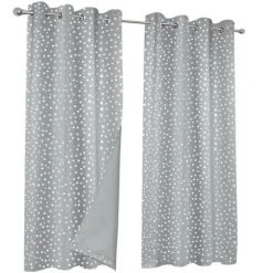 Couleur : gris. Dimensions : largeur 140 x longueur 260 cm. Matière : 100 % polyester. Finition : 8 illets métal de 4,5 cm de diamètre. Marque Atmosphera.