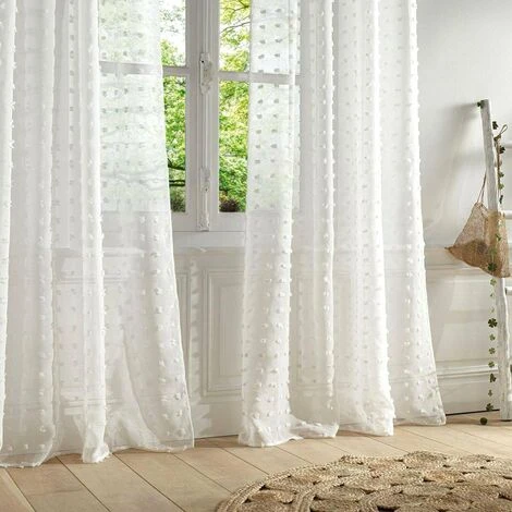 Couleur: blanc. Dimensions: largeur 140 x longueur 240 cm. Matière: 100% polyester. Finition: 8 oeillets métal de 4,5 cm de diamètre.