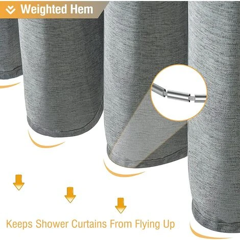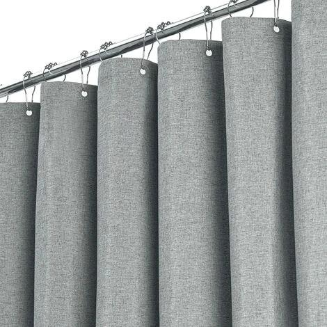 BAICCCF 180 X 200 Cm De Long De Douche En Tissu Gris Rideau , Ensemble De Rideaux De Douche En Tissu Résistant Texturé En Lin Avec Crochets