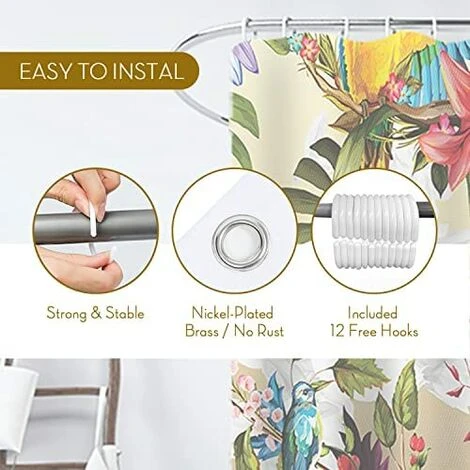 Contenu de l’emballage : les ensembles de rideaux de douche comprennent un rideau de douche impermĂ©able et 12 crochets en plastique. La taille 180 x 200 cm s’adapte Ă la plupart des baignoires et douches de taille standard. ImpermĂ©able – Nos rideaux de douche sont fabriquĂ©s en tissu polyester rĂ©sistant de qualitĂ© supĂ©rieure. La texture est ferme et lisse, ce qui favorise la formation de perles d’eau et aide Ă garder le sol de votre salle de bain sec et agrĂ©able. De petites perles d’eau se forment sur le rideau, permettant une Ă©limination douce de l’eau et un sĂ©chage rapide du rideau de douche. Fiable et pratique – Trous d’anneau/crochet renforcĂ©s pour une suspension facile tout en offrant une durabilitĂ© accrue. Des crochets en plastique de haute qualitĂ© vous permettent de vous dĂ©barrasser des problèmes de rouille.VariĂ©tĂ© de styles – les rideaux de douche conçus avec des Ă©lĂ©ments uniques donneront Ă votre salle de bain un aspect neuf. Une correspondance raisonnable des couleurs permet plus de lumière dans la douche. Une variĂ©tĂ© de styles de rideaux de douche sont disponibles pour vous, qui peuvent ĂŞtre assortis Ă n’importe quel style de salle de bain. Instructions d’entretien : rideau de douche en tissu rĂ©sistant Ă la dĂ©coloration, lavage en machine Ă l’eau froide, ne pas utiliser de javel et sĂ©cher par culbutage Ă basse tempĂ©rature.