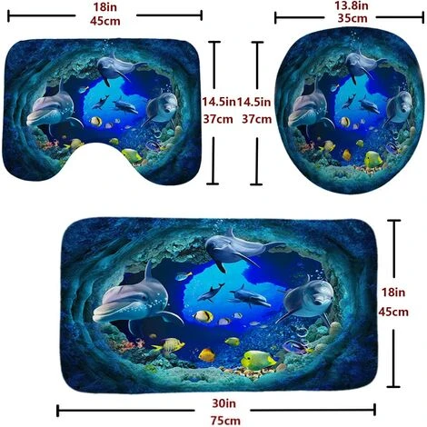 MATĂRIAU PREMIUMă Le rideau de douche Dolphin de l’ensemble de rideaux de douche est fabriquĂ© en polyester de haute qualitĂ©, doux et impermĂ©able. La surface du tapis de salle de bain antidĂ©rapant, de la housse de toilette et du coussin en forme de U est en tissu de flanelle de haute qualitĂ©, le milieu est en Ă©ponge absorbante et le fond est en tissu antidĂ©rapant. Doux et dĂ©licat, vous aide Ă profiter d’un bon moment de bain.