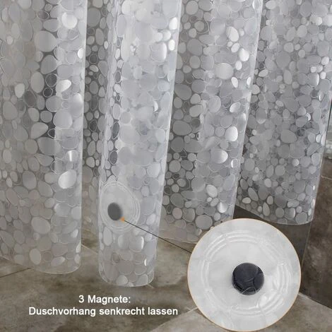 - Conception: Ce rideau de douche est équipé de 12 œillets en métal antirouille et des anneaux en plastique correspondants.Il convient donc aux tringles de douche droites ou courbes et ne fait aucun bruit de grattage. 3 aimants en bas facilitent le pliage. La conception 3d moderne, le motif pavé semi-transparent préservent votre vie privée. Ce sera un excellent choix pour les familles ou les hôtels.