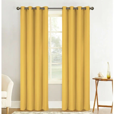 BEST INTERIOR Paire De Rideaux Occultant Unis Jaune Moutarde 140x260cm – Jaune Moutarde