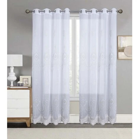 Paire de voilage macramé ZoyaLe voilage Zoya se dénote par ses motifs à ornements chic et raffiné qui sauront vous séduire et rendre vos proches envieux. Côté décoration, une ambiance contemporaine s’accordera à merveille à ce voilage grande largeur.Cédez pour son esprit baroque synonyme d’élégance qui saura redonner du pep’s à votre intérieur.Dimension par rideau : 140cm de largeur et 240cm de longueurFinition : 8 oeillets argentésComposition : 100% polyesterEntretien : 30°Un voilage est un rideau de voile léger et transparent, utilisé pour laisser traverser la lumière ainsi que de profiter de la vue extérieur tout en protégeant votre intimité.Elle sert également à atténuer la luminosité, elle peut être l’unique habillement de votre fenêtre, ou, si vous disposez de tringles à double barre, être associée à un rideau obscurcissant ou occultant si vous désirez bloquer toute lumière et regard extérieur la nuit tombé.