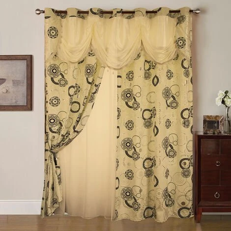 Rideau et voilage Mille et une nuit Laissez vous emporter par ce rideau cousu avec son voilage surmonté d’une cantonnière, inspiré de l’orient. Ces sublimes motifs sont composés d’un jeu de couleur et de brillance, quant à la cantonnière, nous y avons ajouté des petites perles pour lui donner plus d’élégance. Le rideau et voilage Mille et une nuit vient habiller vos fenêtres, avec un style qui vous fera voyager à coup sûr depuis chez vous. Un voilage unicolore vient se poser devant les fenêtres, quand sur les côtés, deux rideaux sont ornementés de motifs qui rappellent sans hésitation les graphiques orientaux. Les rideaux s’attachent pour laisser apparaitre le voilage et au-dessus, un rideau cantonnière apporteune touche finale à cet ensemble harmonieux. Dans une ambiance plus colorée, le rideau voilage Mille et une nuit de couleur rouge, orange ou rose viendra égayer l’intérieur de ceux quoi ont besoin de couleurs pétillantes au quotidien. Il s’accorde très bien et apporte du caractère à des murs blancs et une décoration discrète, et il sera un élément essentiel d’une décoration orientale où prennent place de jolies meubles en bois etargentés aux formes orientales et divers objets aux lignes, motifs et couleurs scintillantes.