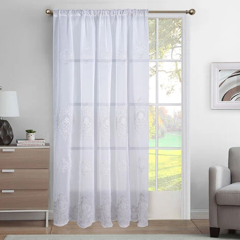 Voilage grande largeur macramé galon fronceur IkoLe voilage grande largeur macramé Iko se dénote par ses motifs à ornements chic et raffiné qui sauront vous séduire et rendre vos proches envieux. Côté décoration, une ambiance contemporaine s’accordera à merveille à ce voilage grande largeur.Cédez pour son esprit baroque synonyme d’élégance qui saura redonner du pep’s à votre intérieur.Dimension par rideau : 300cm de largeur et 240cm de longueurFinition : galon fronceurComposition : 100% polyesterEntretien : 30°Un voilage est un rideau de voile léger et transparent, utilisé pour laisser traverser la lumière ainsi que de profiter de la vue extérieur tout en protégeant votre intimité.Elle sert également à atténuer la luminosité, elle peut être l’unique habillement de votre fenêtre, ou, si vous disposez de tringles à double barre, être associée à un rideau obscurcissant ou occultant si vous désirez bloquer toute lumière et regard extérieur la nuit tombé.