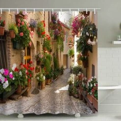 BDD Rideau De Douche Fleur Rue Rideau De Douche Impression Polyester Imperméable Rideau De Douche