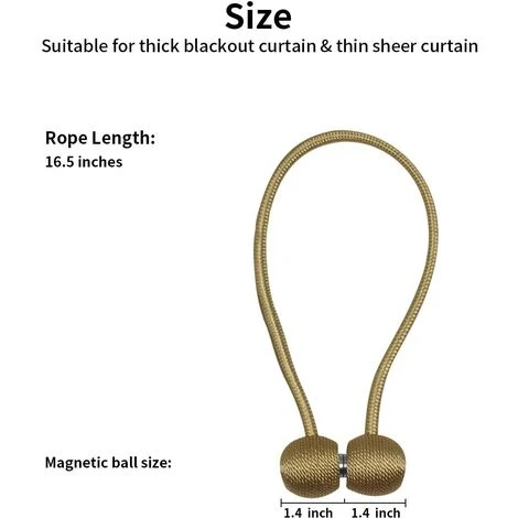 - Qualité Premium: : Longueur totale : 40 cm/16″ « , Diamètre de la boule : 3,5 cm/1,4 « ». Notre support de rideau est fabriqué ePolyester à la main avec une belle apparence de texture tissée, ce qui lui permet d’être anti-pli et durable. Il est doté d’une boucle magnétique aux terres rares sur le côté, ce qui vous aide Attacher fermement le rideau et à mieux profiter du soleil ou du magnifique paysage à l’extérieur de la fenêtre.