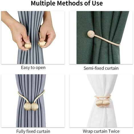 - Facile à appliquer: : ils s’emboîtent avec des aimants qui les maintiennent ensemble. Vous pouvez les faire glisser vers le haut ou vers le bas sur vos rideaux pour trouver la hauteur qui vous convient le mieux. Ou vous pouvez leAttacher avec désinvolture et les enveloppeDeux fois sur des rideaux minces, et ils n’endommageront pas votre mur. S’ils ne sont pas utilisés, vous aurez peut-être besoin d’un crochet pour les accrocher ou placez-les simplement sur la tringle à rideau afin de les trouver facilement.