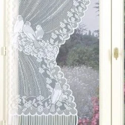 HOMEMAISON Paire De Rideaux « Bonne-Femme » Dentelle Et Franges Blanc 60 X 120 Cm – Blanc