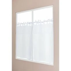 RIDEAUDISCOUNT Vitrage 45 X 120 Cm à Nouettes Effet Naturel Tête Doublée Uni Blanc – Blanc