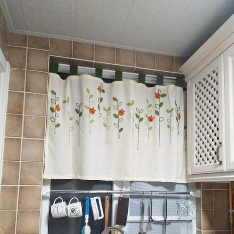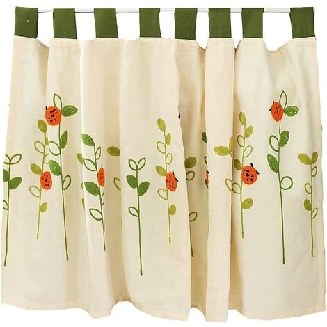 Rideaux de cuisine courts Largeur 150 cm, Hauteur 60 cm .La hauteur comprend déjà la partie des élingues.【Rideaux bonne femme】Les rideaux de fenêtre courts de style champêtre rural pour la couleur de fond beige, la coccinelle et les fleurs brodées, semblent délicats et beaux. Taux d’ombrage: 40-70%【Facile à installer】Convient pour une tringle à rideau jusqu’à 2,8 cm de diamètre, et lavable en machine en cycle délicat à 30 ° C (pas d’accessoires, le prix d’une seule pièce)【Avantage】Les rideaux courts décorent vos fenêtres et portes avec un style frais.Ils sont utilisés comme rideaux de cuisine, rideaux de bistrot, rideaux courts, demi-rideaux pour la cuisine ou la chambre d’enfants.Quantité livrée : 1 pièceTaux d’ombrage : décoration + ombrage complet Couleur : comme indiquéUtilisation : Type de tige (des tiges télescopiques sans trou soutiennent les murs aux deux extrémités, passent les rideaux à travers les tiges et maintiennent les deux extrémités en fonction de la largeur du mur, les patins en caoutchouc antidérapants sont fixés et ne glissent pas, et le mur ne sera pas endommagé)Accessoires : Aucun accessoire, seuls les rideaux, les tiges télescopiques sont prises séparément.Utilisations : lavabo/armoire/étagère/cuisine/toilette/petite fenêtre, etc.