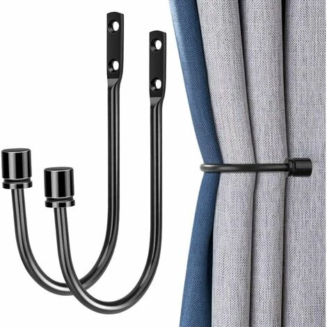 Deckon 2 Pièces De Retenue De Rideau En Métal, Embrasses De Draperie Décoratives Fixées Au Mur Avec Vis, Retenues De Traitement De Fenêtre Robustes Pour La Décoration Intérieure, Noir