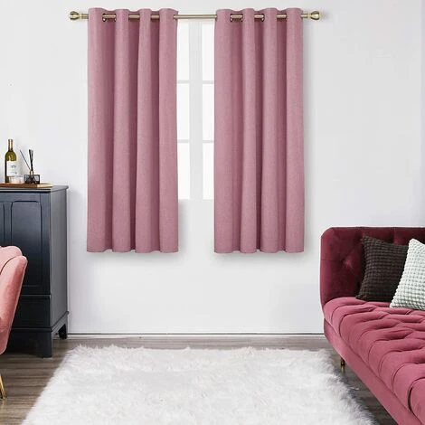 Deconovo Rideaux Occultants Thermique Isolant, Design Moderne à Oeillets, 2 Pieces Rideaux Pour Salon Et Chambre, 117×138 Cm, Rose – Rose