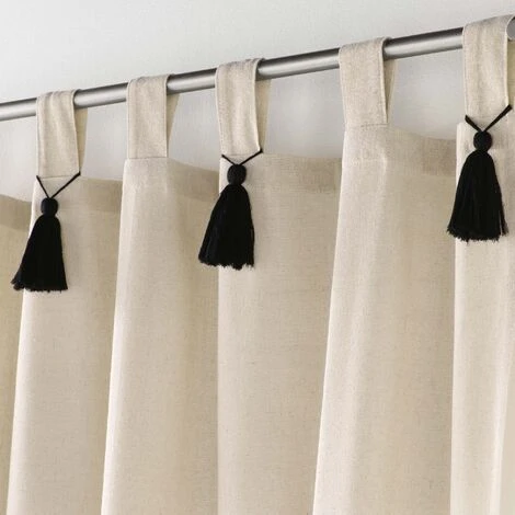 rideau a passants+pompons 140 x 240 cm polycoton uni cyrine