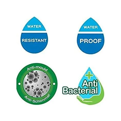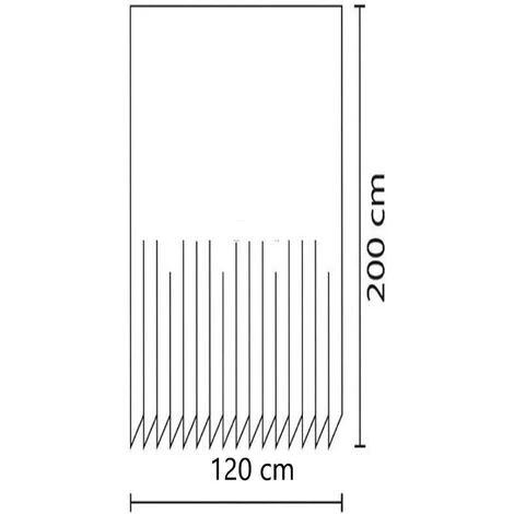 La dimension du rideau de salle de bain est de 120 x 200 cm (200 cm de long – 120 cm de large). Matériau : tissu 100 % polyester de qualité supérieure 90 g/m², imperméable, hydrofuge, résistant à la moisissure et lavable en machine.