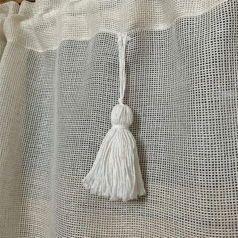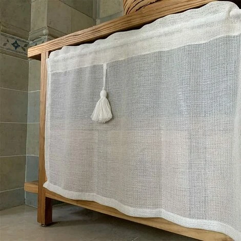 Les demi-rideaux sont en voile. Le tissu d’apparence lin est doux, ce qui protège l’intimité et évite les rayons du soleil.