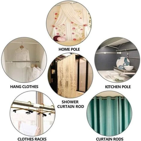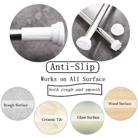 Un support de tringle rideaux sans percage adaptĂ© Ă tous types de murs: Les barres de tension Ă ressort / Barre rideau douche ne posent certainement aucun problème pour tout mur de papier peint, mur de carrelage, cadre en bois, mur lisse ou rugueux,etc.La barre de rideau robuste n’est pas seulement utilisĂ©e comme tringle Ă rideau de douche dans la salle de bain,mais peut Ă©galement ĂŞtre utilisĂ©e comme Ă©lĂ©ment de fixation pour les rideaux ordinaires ou comme tringle Ă linge pour les vĂŞtements.