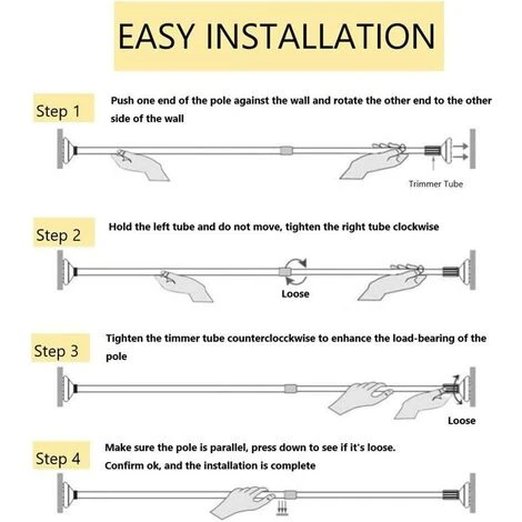 Barre Rideau-Facile Ă installer: Aucun outil, aucun perçage, aucun dommage Ă la surface lors de l’installation notre support tringle rideaux! Installation simple et rapide. Facile Ă Ă©tendre, tirer et verrouiller, poignĂ©es en caoutchouc souples et robustes Ă l’extrĂ©mitĂ©, installĂ©es en quelques minutes seulement. La tringle a rideaux extensible sans percage est montĂ©e entre les murs avec une tension Ă ressort et maintenue en place avec des poignĂ©es d’extrĂ©mitĂ© en caoutchouc transparent.
