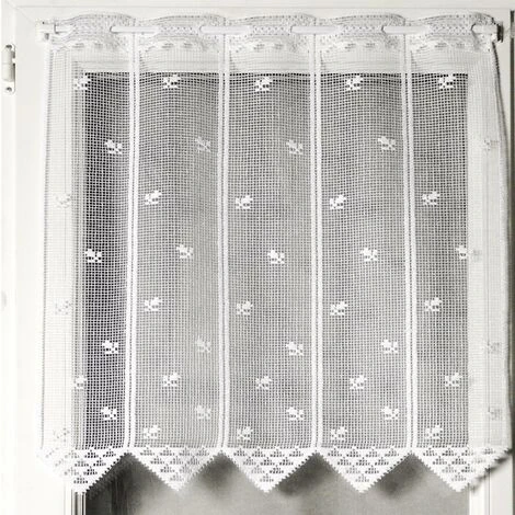 Ce brise bise apportera du cachet à votre fenêtre tout en laissant traverser la lumière. Idéal pour habiller vos petites ouvertures au sein de votre cuisine, celui-ci est formé de petits bandeaux verticaux en pointe qui sublimeront votre intérieur. Son sytème de fixation se fera par « boutonnières « brodées ou il ne vous restera plus qu’à passer votre tringle. . Lavable en machine à 30°. . Caractéristiques:. Composition : 100% polyester . Coloris : blanc. Laizes (largeurs) : 30, 60, 90 et 120 cm. Entretien : lavage en machine à 30°. . * Si vous avez besoin de 115 cm, il faudra commander 120 cm car nous coupons de 10 cm en 10 cm avec un minimun de 50 cm avec une laize de 30, 60, 90 et 120 cm. .