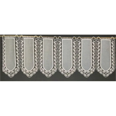 Ajouré comme une dentelle, ce brise bise modulable en étamine fantaisie et macramé laissera rentrer la lumière au sein de votre intérieur. Le bas de celui-ci est festonné avec un son sytème d’attache qui se fera par anneaux brodés ou il ne vous restera plus qu’à passer votre tringle à l’intérieur. . Les hauteurs de ces brise bises sont de 30 cm, 60 cm et 120 cm avec une largeur de 50, 80, 110 ou 130 cm pour qu’ils puissent s’adapter à vos fenêtres. Lavable en machine à 30°. . Caractéristiques:. Finition : à anneaux brodés. Coloris : ivoire. Composition : étamine fantaisie et macramé en 100% polyester. Dimensions : H 30 x L 50 cm, H 30 x L 80 cm, H 30 x L 110 cm et H 30 x L 130 cm. H 60 x L 50 cm, H 60 x L 80 cm, H 60 x L 110 cm et H 60 x L 130 cm. H 120 x L 50 cm, H 1200 x L 80 cm, H 1200 x L 110 cm et H 120 x L 130 cm. Rapport* : 16 cm. * (La mise au rapport permet d’obtenir un motif qui se répète (ici tous les 16 cm) sans délimitation, sans rupture ni soudure.). . Vendu à l’unité. Prêt à poser.