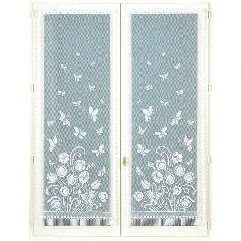 Paire de vitrages à l’aspect dentelle . Ondulé sur les côtés et frangés sur le bas. Impression Florale avec une échappée de papillons. Finition de tête à tunnel passe tringle . 2 coloris: blanc et peint. Plusieurs dimensions: 60 x 120 cm, 60 x 160 cm et 60 x 220 cm. Prêt-à-poser. La lumière traversera ces panneaux tout en vous protégeant des regards extérieurs. Caractéristiques:. Dimensions: 60 x 120 cm, 60 x 160 cm et 60 x 220 cm. Coloris: blanc et peint. Composition: 100% polyester. Finition: tunnel passe tringle. . Vendu à la paire. Prêt-à-poser