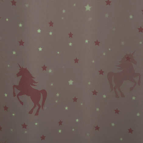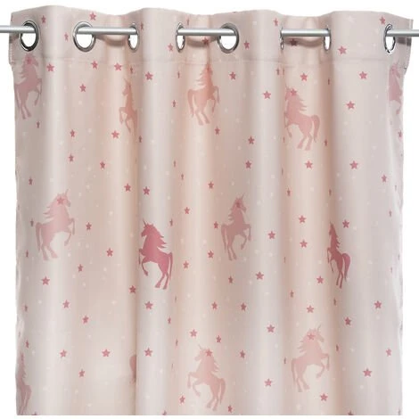 Féerique ce joli rideau occultant de 140 x 250 cm avec ses motifs licorne et étoiles phosphorescents qui s’illuminent la nuit. . Celui-ci trouvera parfaitement sa place dans une chambre de princesse et protégera la pièce de la lumière extérieure. . Avec les 8 oeillets ronds canon de fusil, il est prêt à poser. . Caractéristiques :. Dimensions : 140 x 250 cm. Composition : 100% polyester . Finition : 8 oeillets ronds canon de fusil et bande de renfort au niveau des oeillets. Coloris : rose. . Vendu à l’unité. Prêt à poser