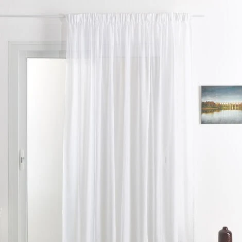 Vendu à l’unité . Ce rideau voilage classique uni est en matière poly/lin. Il est disponible en coloris blanc soit en 240 cm de large, soit en 300 cm de large. La hauteur est toujours 240 cm. Le système d’accroche est le galon fronceur (pour tringle rail ou avec crochets) de 6 cm de haut. . Composition : 91 % polyester – 9 % lin. Matière : Poly/lin. Finition : Haut Galon fronceur. Bas plombé. .