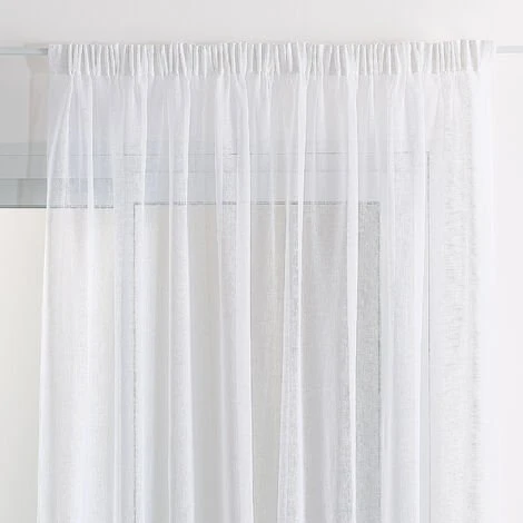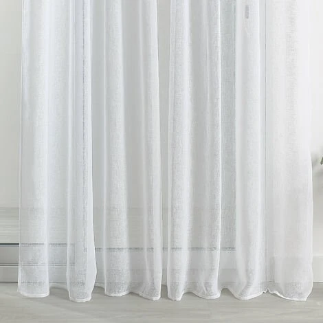 Ce voilage uni à effet lin s’intégrera sans difficultés au sein de votre intérieur. Ce panneau laissera traverser la lumière tout en vous protégeant des regards extérieurs. Lavable en machine à 30°. . Caractéristiques:. Dimensions : 180 x 290 cm, 240 x 240 cm et 240 x 290 cm. Coloris : blanc. Composition : étamine en 100% polyester. Finition : galon fronceur. . Vendu à l’unité. Prêt à poser