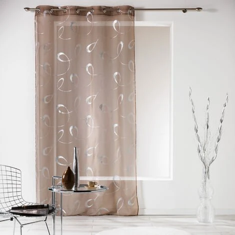 Ce voilage aux impressions d’arabesques métalissées sur un fond uni habilleront avec. élégance vos fênetres. En étamine, ce voilage laissera passer la lumière tout en coupant le vis à vis de votre fenêtre. Lavable en machine à 30°C. . Caractéristiques:. Dimension : 140 x 240 cm . Composition : 100% polyester. Matière : Etamine. Coloris : blanc. Finition : 8 oeillets ronds en coloris argent avec une bande de renfort. . Vendu à l’unité. Prêt à poser