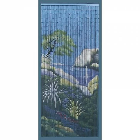 Rideau de porte calanque en bambou. 72 pendants. Barre de fixation en bois aux coloris assortis aux motifs. Boîte individuelle avec photo couleur.Matière : Bambou