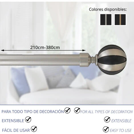 Barre extensible pour des rideaux.Il s’adapte parfaitement à tout type de décoration.Joli design.Qu’ils soient rideaux, rideau de douche, partition, rack, rack, pots ou écran de confidentialité (balcon) – peu importe ce que vous décidez, votre bar multifonction répond à tous vos souhaits!Dimensions: 8x4x230cmComposition: aluminiumLa couleur noire