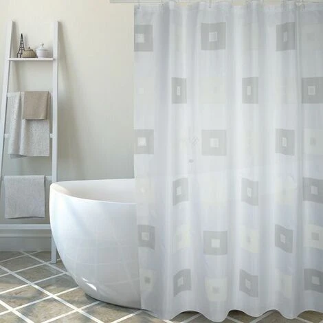 M S V MSV Rideau De Douche Polyester BLOCK 180x200cm QUALITÉ PREMIUM Gris – Anneaux Inclus – Gris