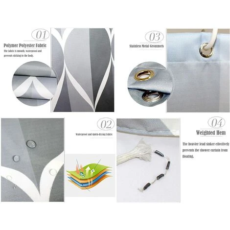 Taille: Le rideau de douche mesure 120x180cm.Veuillez mesurer votre baignoire ou votre salle de bain avant d’acheter.