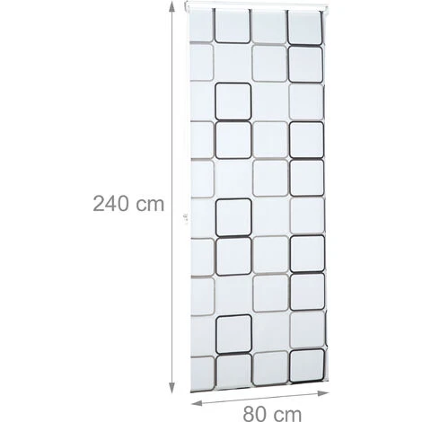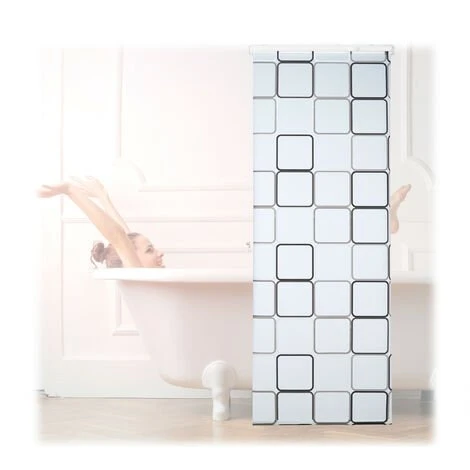Le store de salle de bain semi-transparent au design Rétro avec carrés blancs et gris se fixe simplement à votre plafond et représente une alternative moderne aux rideaux de douche classiques. Le poids à l’extrémité du store lui permet de rester droit dans votre baignoire, ainsi votre carrelage est protégé de l’eau et plus besoin d’éponger à la douche. Si vous ne vous en servez plus, enroulez le store sec vers le haut pour qu’il soit enroulé élégamment.
