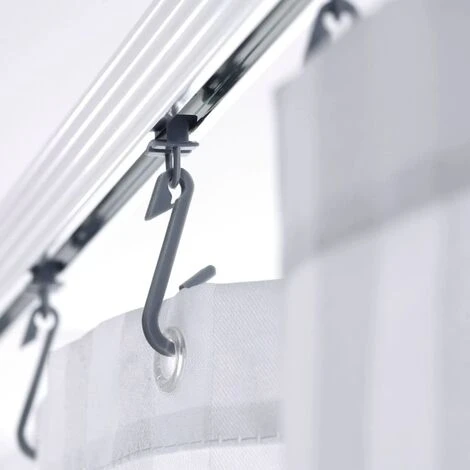 Ce rail de rideau de douche est robuste et droit grâce au support de plafond inclus. Pour un montage exact et permanent du rail de rideau de douche universel, deux suspensions de plafond raccourcies (longueur maximale de 55 cm) sont incluses. Le rail peut également être raccourci à tout moment et aucun anneau de rideau supplémentaire n’est nécessaire car il y a des crochets inclus. Les configurations suivantes sont possibles : 160 x 70 cm, 90 x 90 cm, 90 x 90 x 90 cm.