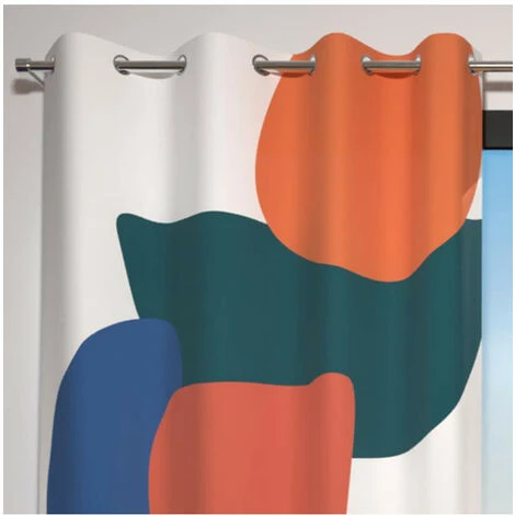 Rideau au design contemporain abstrait et aux couleurs très actuels. Idéal pour créer une atmosphère moderne et unique! Finition: 8 oeillets en acier inox, anti-rouille. Dessin placé. Couleur: Blanc, orange et bleu. Composition: 100% polyester. Dimension : 135×250 cm. Entretien: Facile d’entretien, il se lave à 40°c et sèche rapidement.