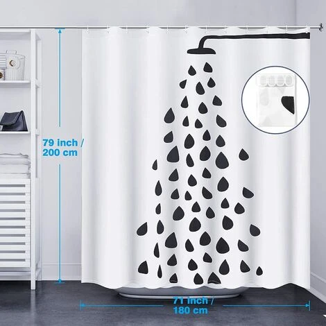 SIZE-180 x 200cm. 1 * rideau de douche et 12 * crochets en PVC gratuits.