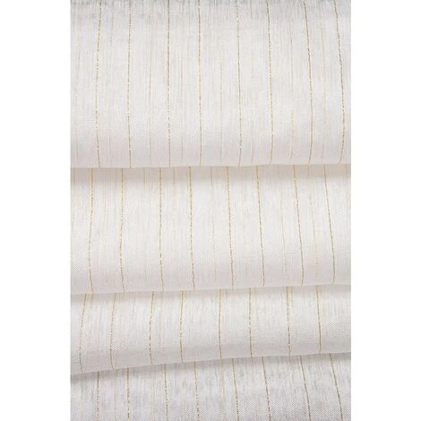 Paire de vitrages avec passe tringle effet lin imprimés de fines rayures verticales avec fil lurex doré blancs. Idéal pour des fenêtres de grande hauteur, ce vitrage au style contemporain, ne passera pas inaperçu.