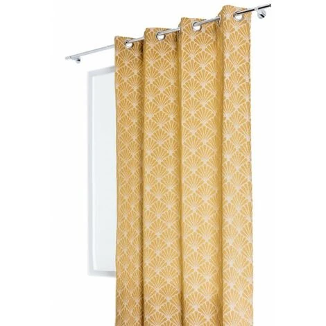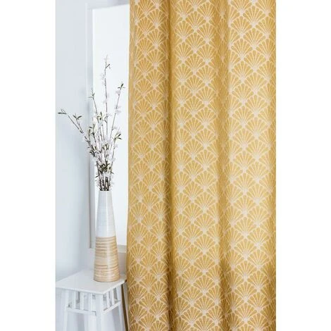 Rideau à oeillets tamisant Jacquard effet naturel avec un motif coquille de couleur jaune. Un rideau qui tamisera votre intérieur tout en apportant une touche de gaieté. Dimensions : 140 cm de largeur x 240 cm de hauteur. Vendu à l’unité.