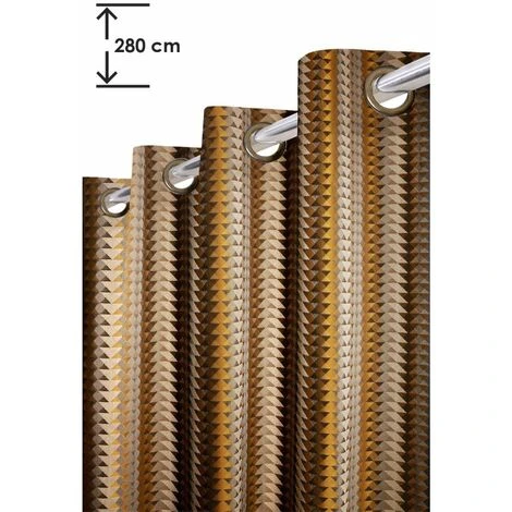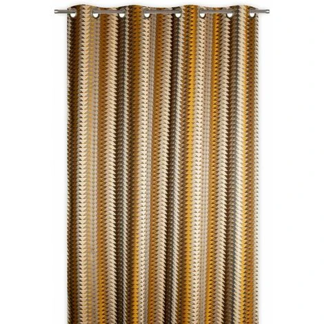Rideau tamisant 135 x 280 cm à oeillets dorés patinés jacquard éditeur motif géométrique brun. Changez votre habillage fenêtres actuel pour ce somptueux rideau jacquard éditeur au motif exclusif et unique. Série Limitée.