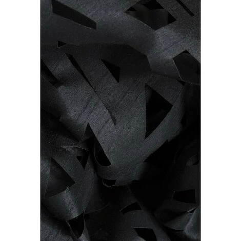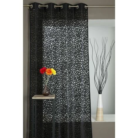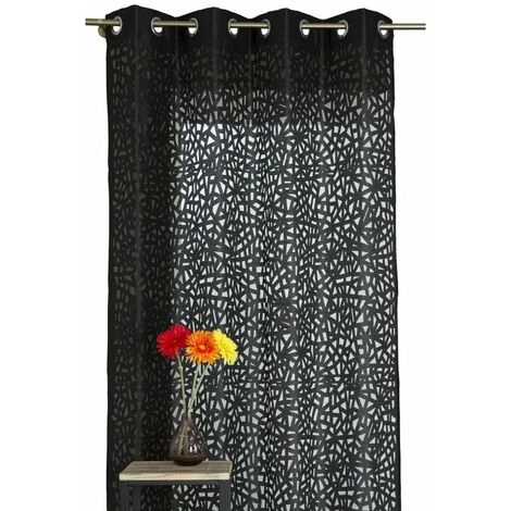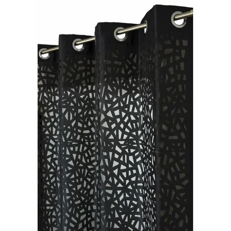 Rideau tamisant 140 x 240 cm à oeillets ajouré motif lasercut géométrique noir. Un rideau présentant un design véritablement original pour un habillage fenêtres que vous ne retrouverez chez personne d’autre.