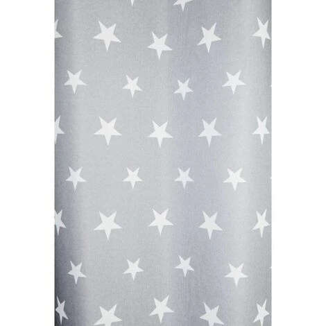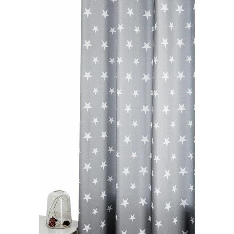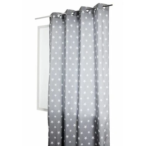 Rideau tamisant à oeillets avec imprimé blanc sur fond gris. Un rideau original avec son imprimé de petites étoiles qui plaira aux plus jeunes.