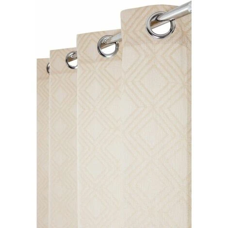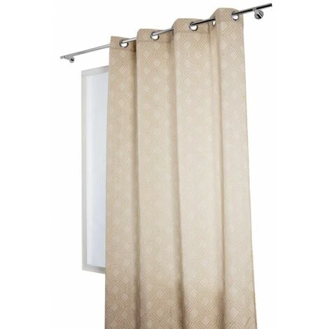 Rideau tamisant à oeillets jacquard avec motifs géométriques et de couleur beige. Un rideau avec une sublime couleur et des motifs originaux qui changeront totalement le style de vos fenêtres.