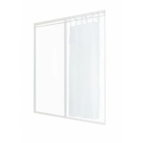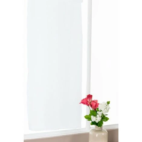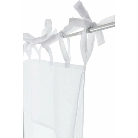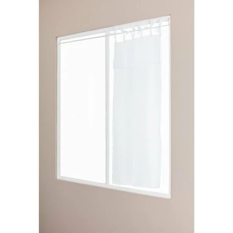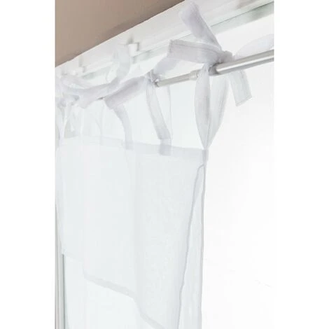 Vitrage de petite largeur à nouettes effet naturel uni de couleur blanc.