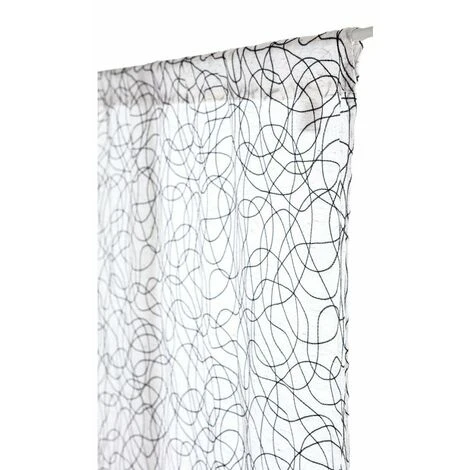 Vitrage passe tringle effet naturel avec des gribouillis brodés et de couleur gris. Un voilage moderne pour une touche subtile en terme de décoration fenêtres.