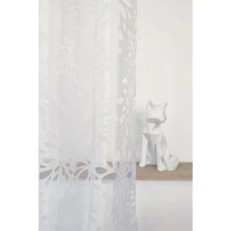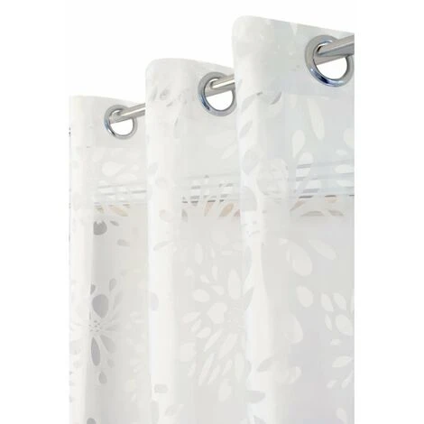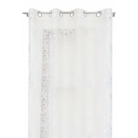 Voilage 135 x 240 cm à oeillets dévoré motif fleur blanc. Un voilage au travers duquel la lumière extérieure se propagera divinement dans votre salon ou chambre à coucher.