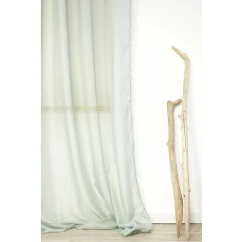Voilage 140 x 240 cm à oeillets effet naturel effet irisé uni vert d’eau. Un voilage d’une couleur peu commune qui fera ressortir votre habillage fenêtres à coup sûr.