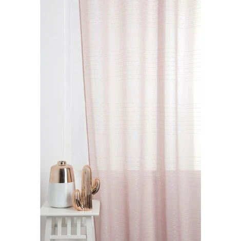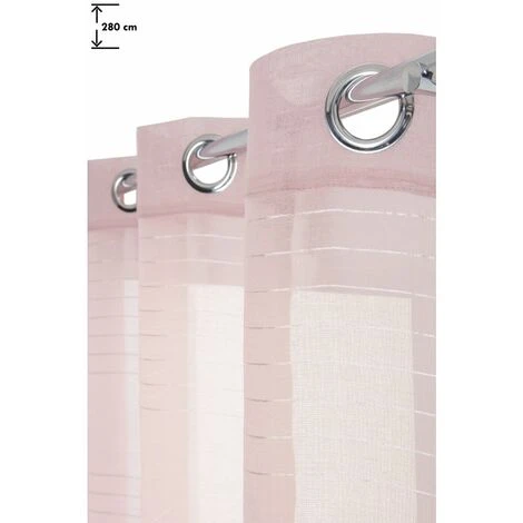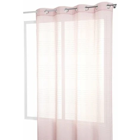 Voilage à oeillets grande hauteur effet naturel avec un liseré, rayures horizontales rose. Un voilage tendance pour une ambiance déco douce.